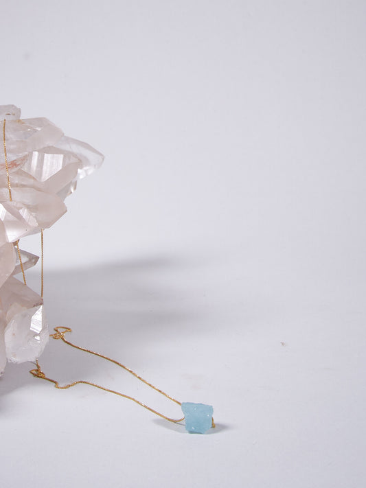 Silber Kette long 18k vergoldet Aquamarin BRAVE 55cm