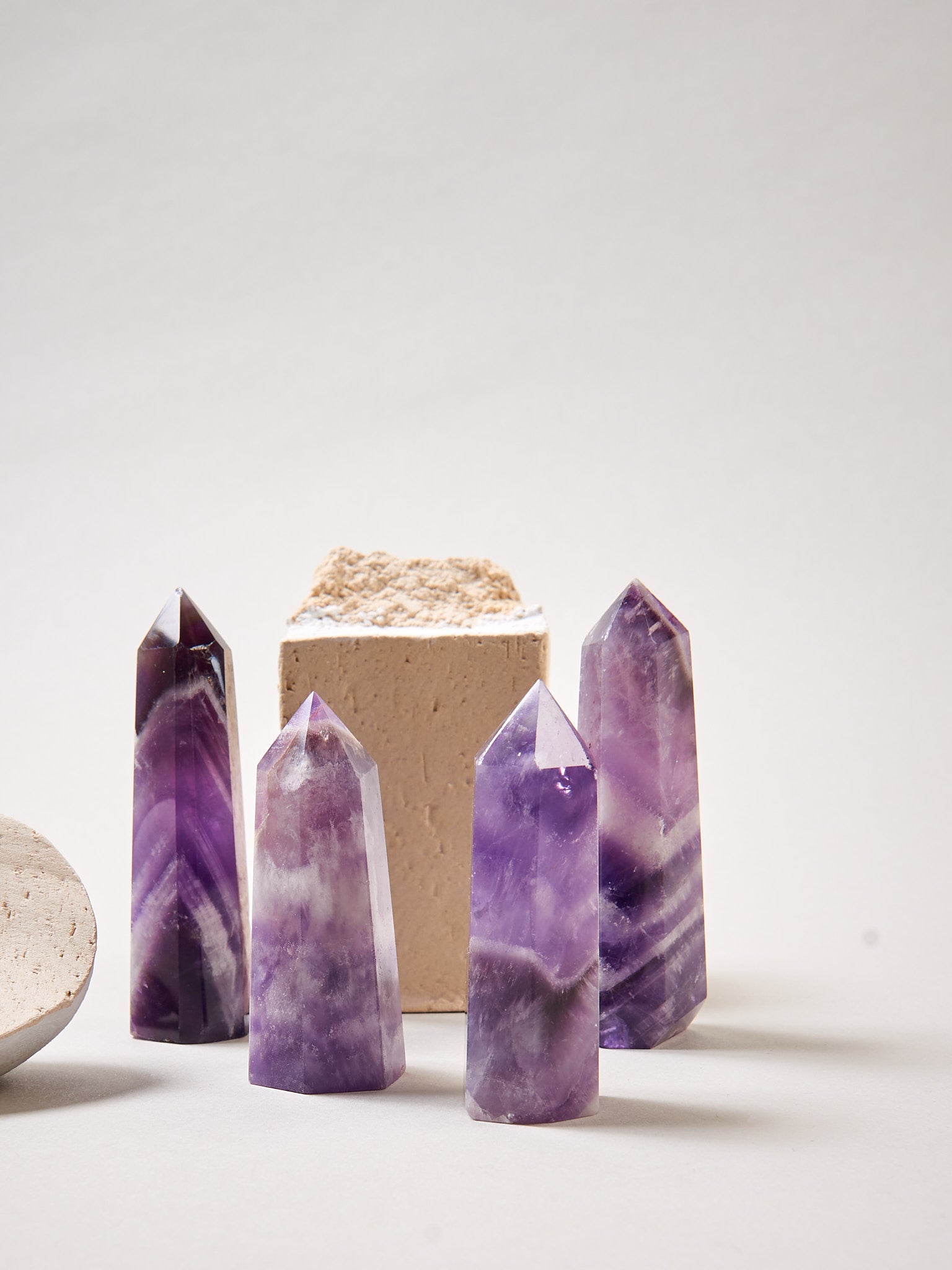 Wir haben ein ganzes Lot wunderschöner Chevron-Ametyhst-Spitzen für euch ergattert. Durch die Maserung ist wirklich jede Spitze ein Unikat.