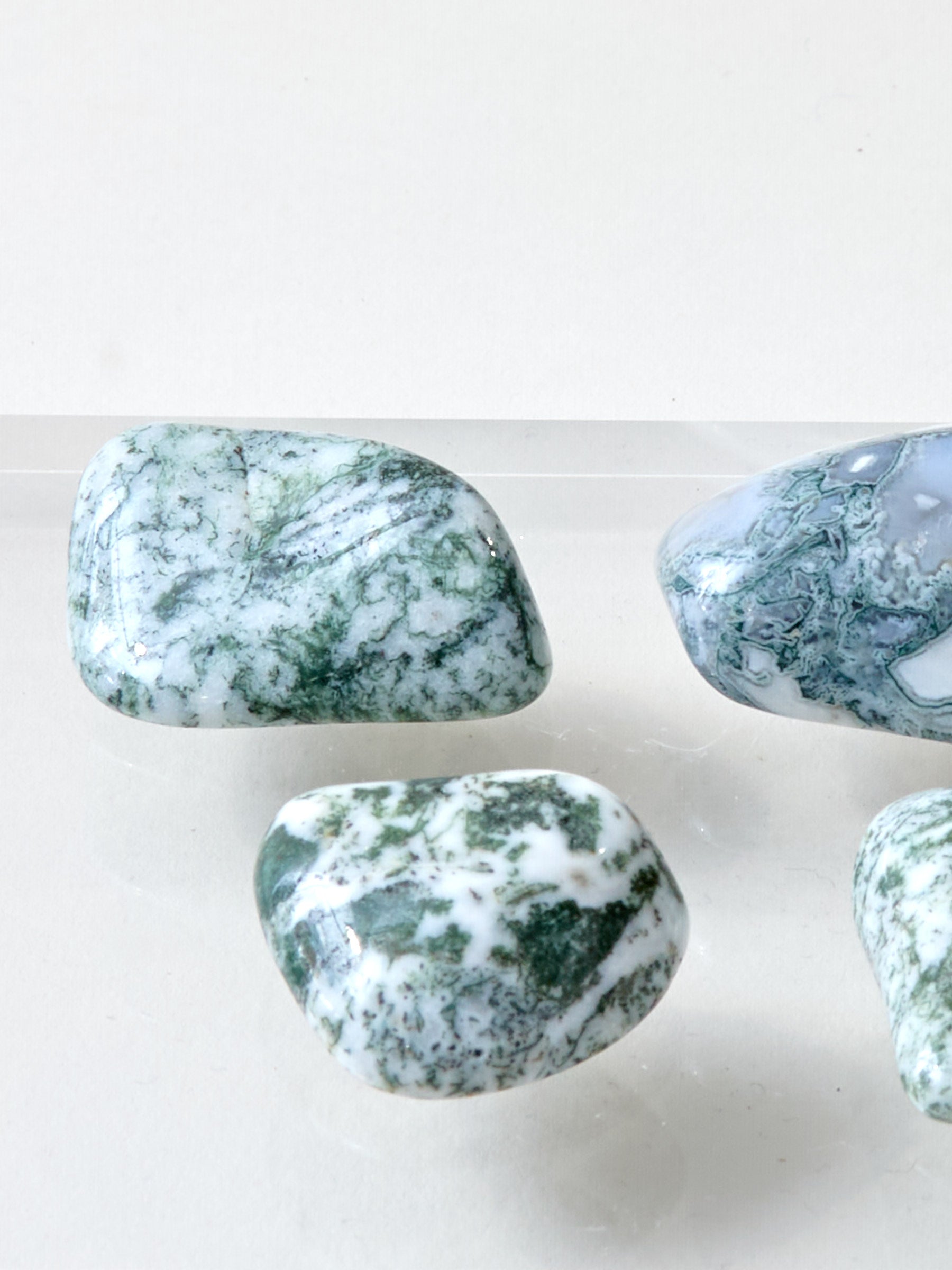 Baumacht ist eine dichtere Variante von Moosachat. Seine grünen Muster ziehen sich durch weißes Gestein. Baumachat ist sehr stabilisierend und in seiner Energie tatsächlich, wie ein ausgedehnter Waldspaziergang. Er verbindet uns mit der Natur und vermittelt Ruhe, Frieden und Ausgeglichenheit. Er bringt uns in Kontakt mit unserer inneren Stärke und erinnert uns an unsere kraftvollen Wurzeln. Er ist ideal für Konfliktsituationen, wenn uns Ereignisse aus der Bahn geworfen haben, oder auch, wenn wir beharrlich an etwas arbeiten wollen.