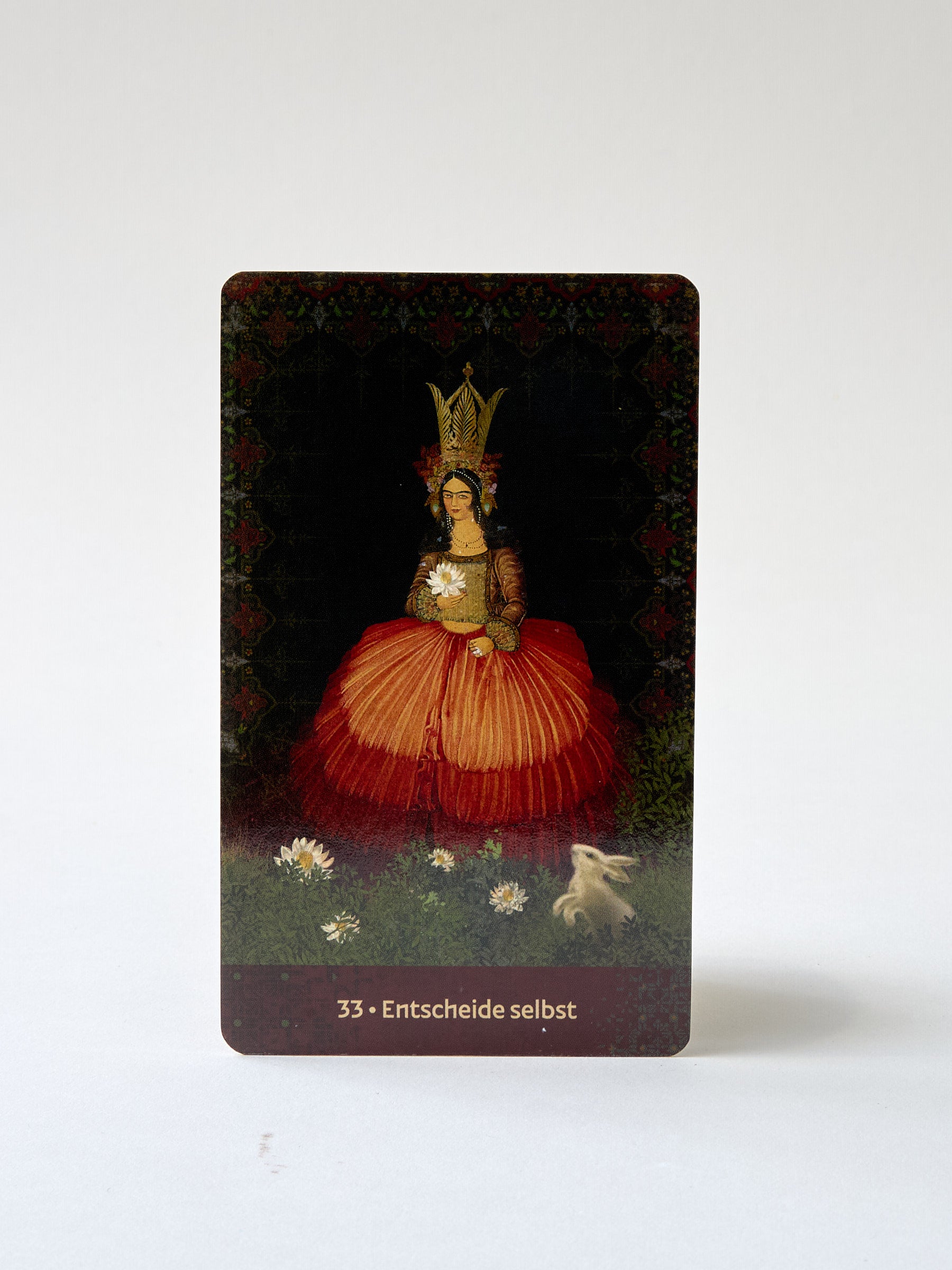 Hafis, der beliebteste Dichter der Perser, lädt dich mit seinen Versen ein, dich an die ursprüngliche Weisheit zu erinnern, die in deiner Seele lebt. Die poetischen Texte des bekannten spirituellen Lehrers und Sufi-Dichters (ca. 1320-1389) ermutigen dich, nach innen zu schauen, dich inspirieren zu lassen und neue Perspektiven zu entdecken. Jede Karte fordert dich zu etwas auf – die Texte im Booklet erklären die Hintergründe, das Ziel und den Weg. Die wunderschönen Karten mit traumhaften, orientalischen Motiven und die einfühlsamen Texte sollen ein Licht in deinem Herzen anzünden und dich begleiten auf deinem Weg zu einem angstfreien, erfüllten und entspannten Leben. Ein kluger Weiser sagte einmal über die Menschen: „Wir bringen uns alle nur gegenseitig nach Hause.“ Möge dieses Deck deine Inspiration sein, um deinen Weg zu finden.