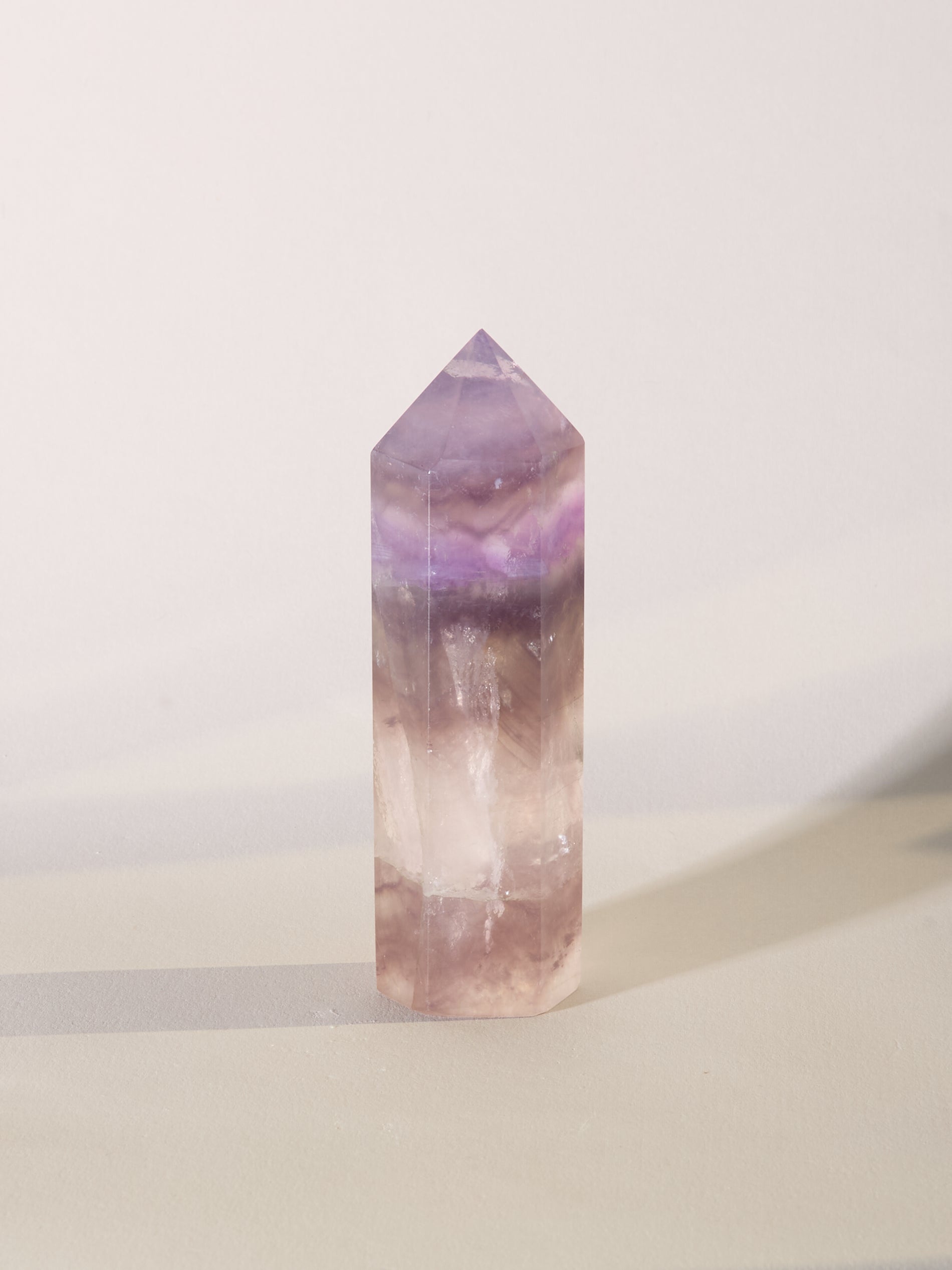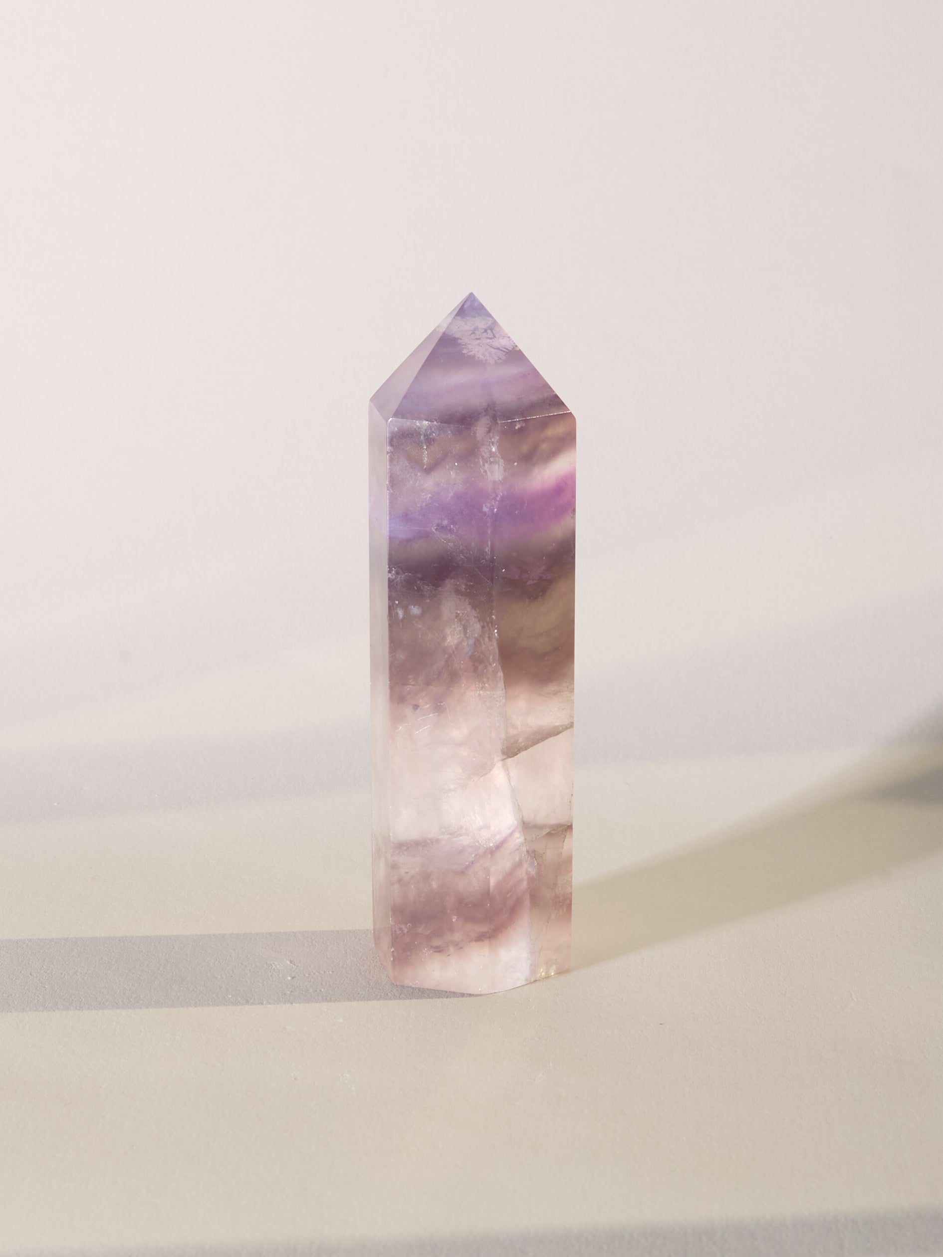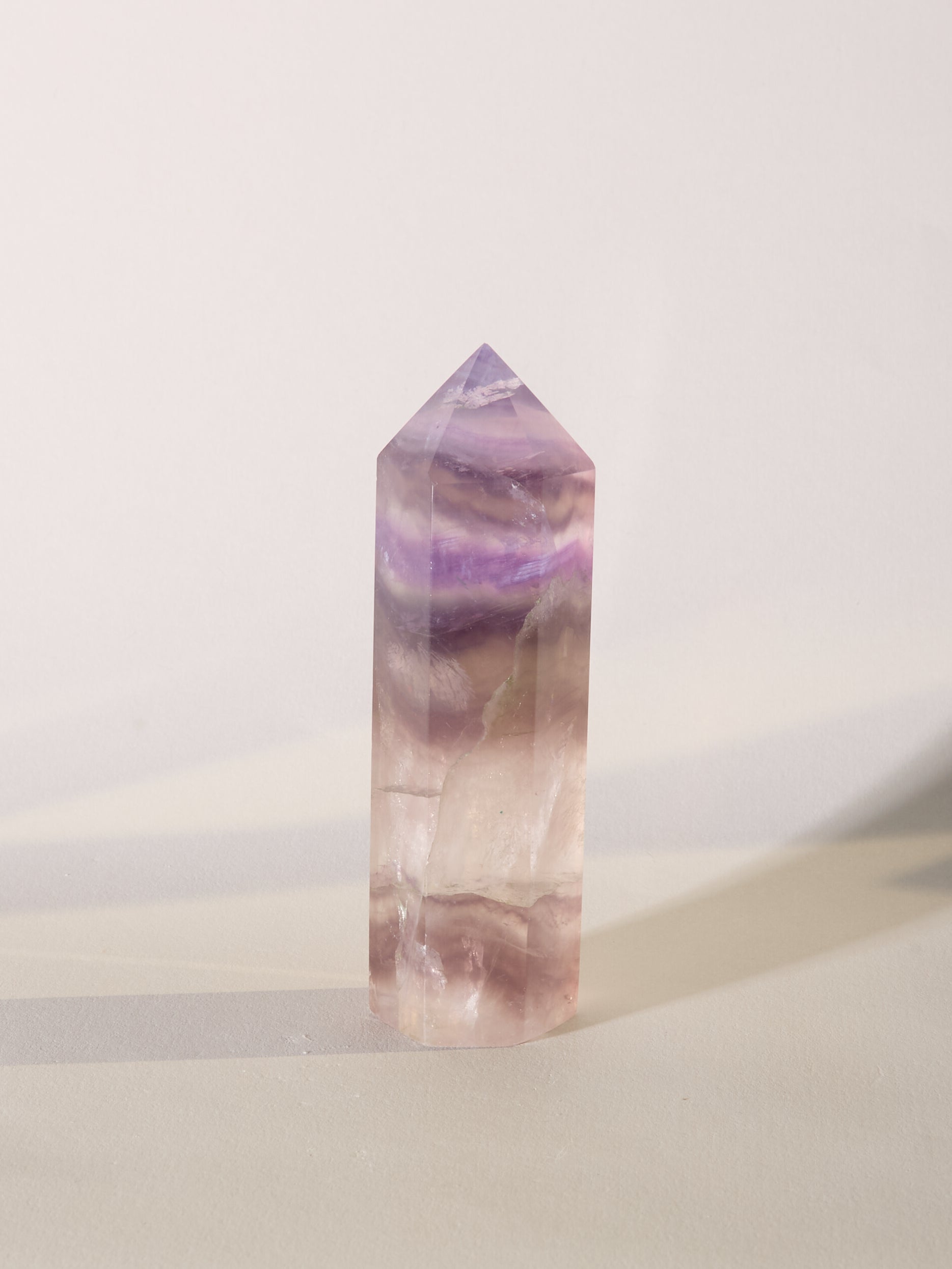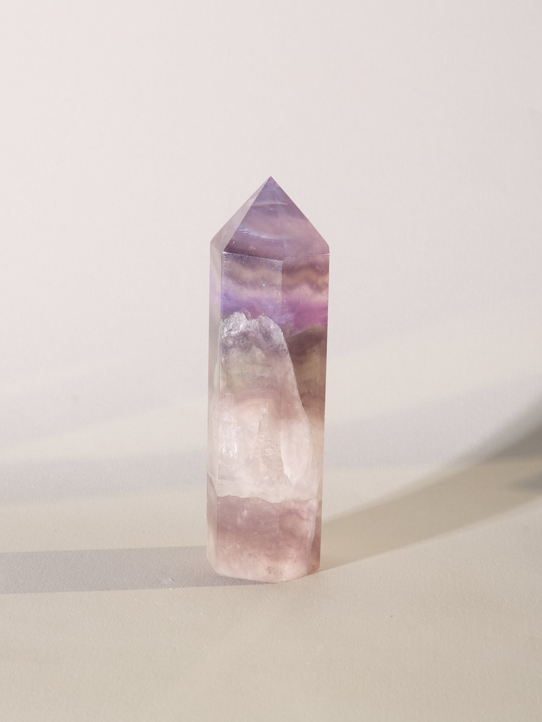 Diese Fluoritspitze ist sehr besonders. Sie hat ein magisches Farbspiel und ungewöhnliche Muster.