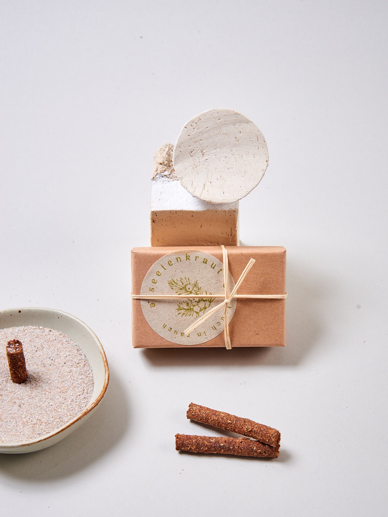 Außerdem werden sie liebevoll von Hand in Hamburg für uns angefertigt. Die Räuchermischung, die du sonst auf Kohle verbrennen würdest, ist für die Glimmstängel fein gemahlen und in Form gerollt worden: 100 % natürliche Harze, Kräuter und Hölzer, ohne Zusätze. Mehr Nachhaltigkeit geht eigentlich nicht.