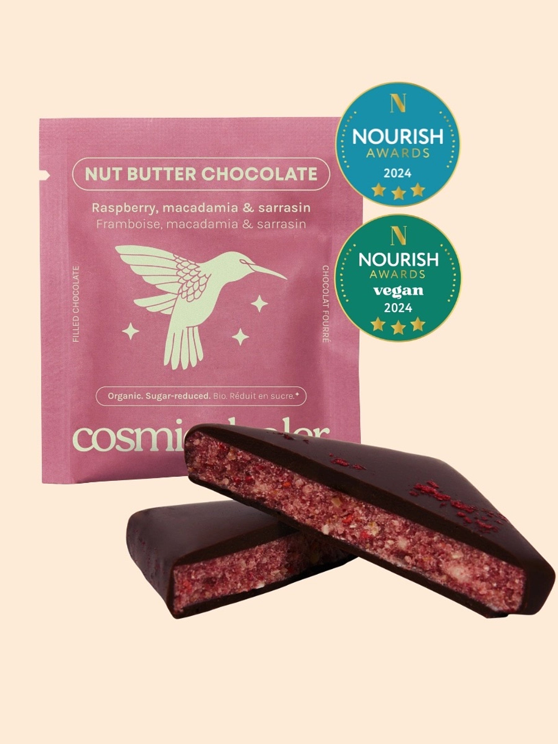 Die beste Süßigkeit, die wir kennen! Die Roh-Cacao-Pralinen von Cosmic Dealer sind alles andere als klassische Mainstream Schokolade, sondern ein echtes Superfood: Die mit Nussbutter gefüllten Schokoladen sind mit Adaptogenen, Früchten, Blumen oder ayurvedischen Gewürzen angereichert und enthalten weder weißen Zucker noch Süßstoffe.