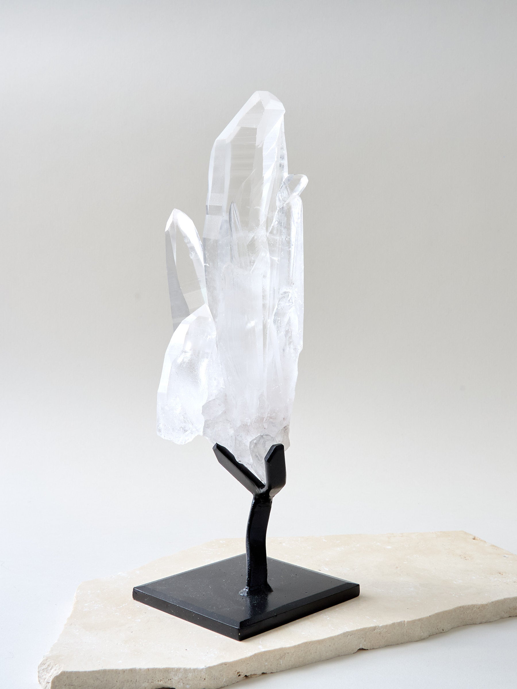Dieser lemurische Bergkristall trägt die Weisheit vieler Welten in sich. Seine Manifestationskraft, sowie die Fähigkeit, die Frequenz in einem Raum zu erhöhen, sind gewaltig. Er ist ein Weltenwandler, der sein Wissen klar, stark und zielbewusst hinausprojiziert. Aus ihm wachsen verschiedene weitere klare Kristalle, fast schon kathedralenähnlich, ohne, dass die weiteren Kristalle mit dem Mutterkristall verschmelzen. Er steht sinnbildlich für das Wissen, die Individualität, ohne, dass man sich in dem anderen verliert.
