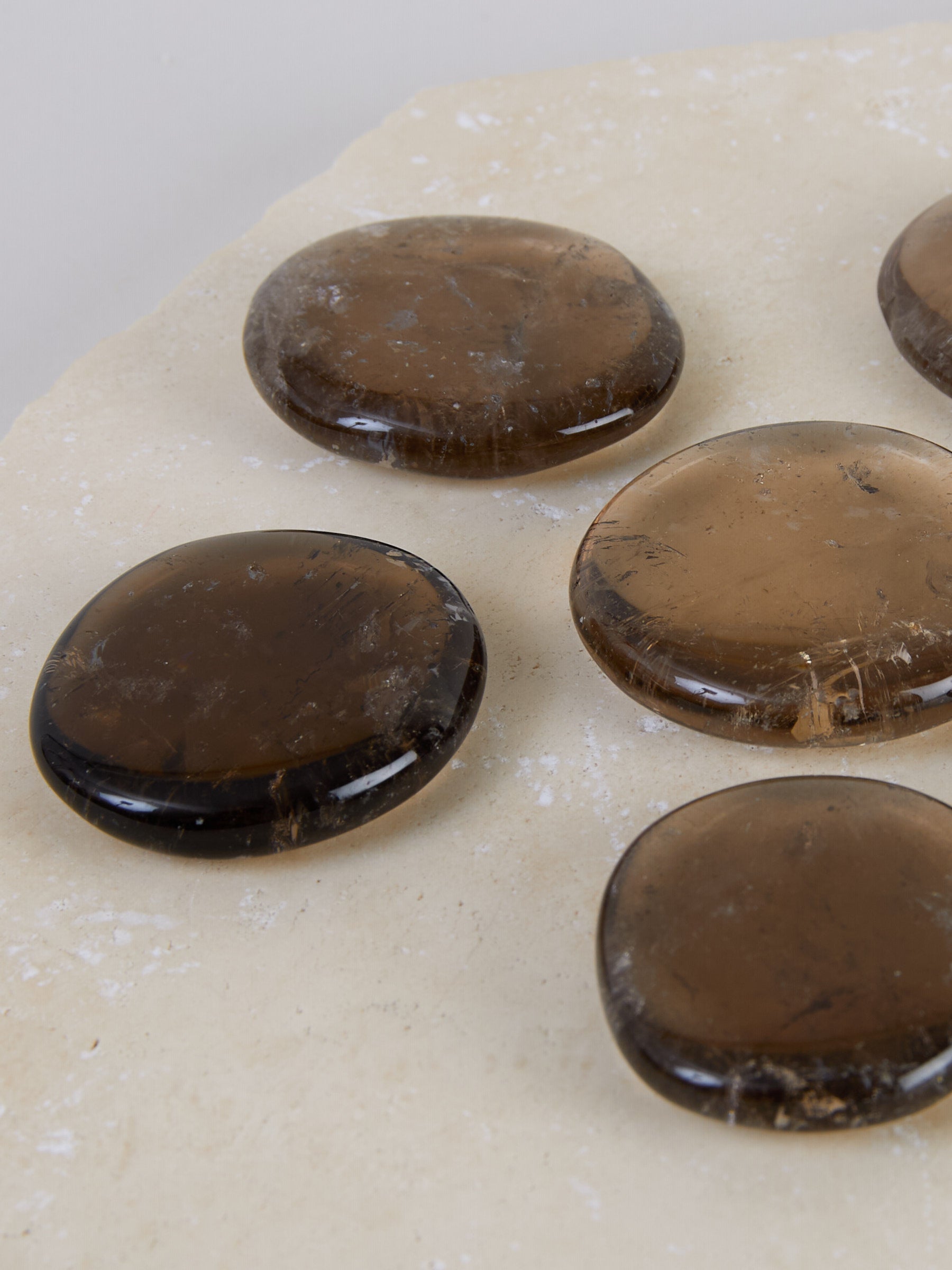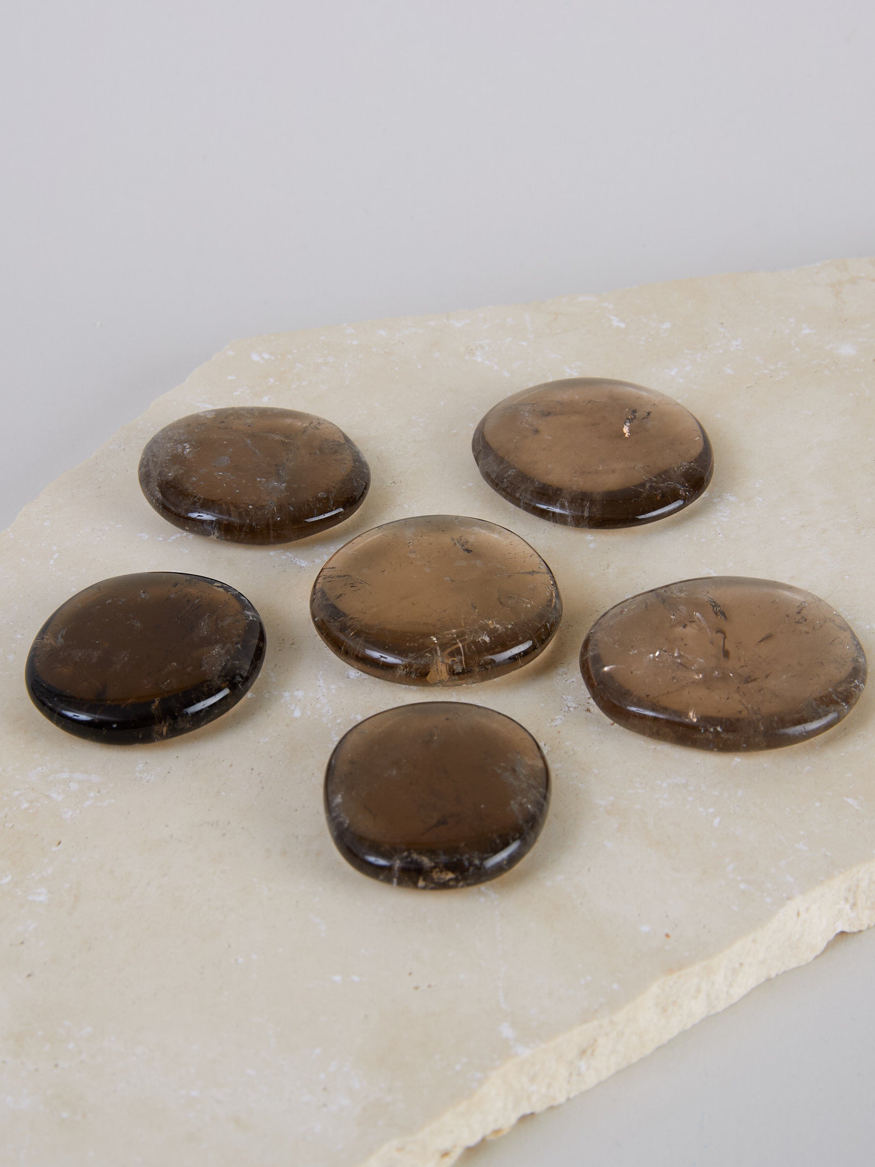 Diese Rauchquarz-Handschmeichler sind besonders klar und haben eine wunderschöne rauchige Farbe.