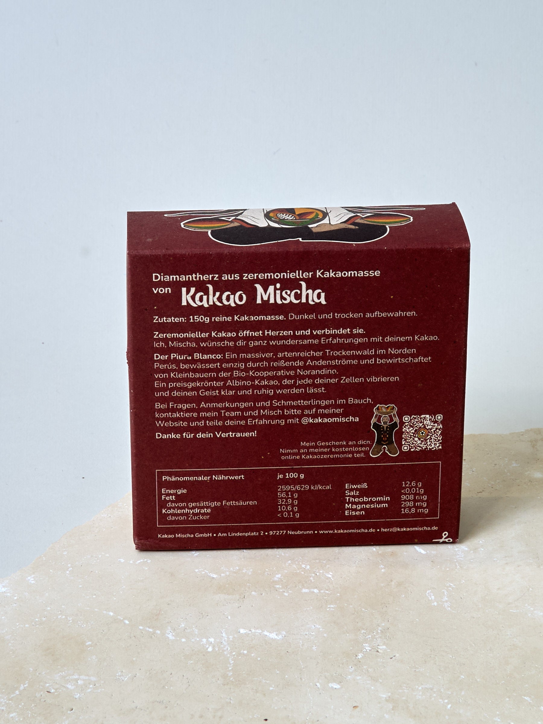 Wir freuen uns riesig, dass wir unser Cacao-Sortiment mit den Cacaos von Kakao Mischa erweitern können. Der zeremonielle Piura Blanco Cacao wird von Hand geerntet und die Bohnen werden in Peru verarbeitet und in wunderschön verzierte Blöcke oder Formen gegossen.