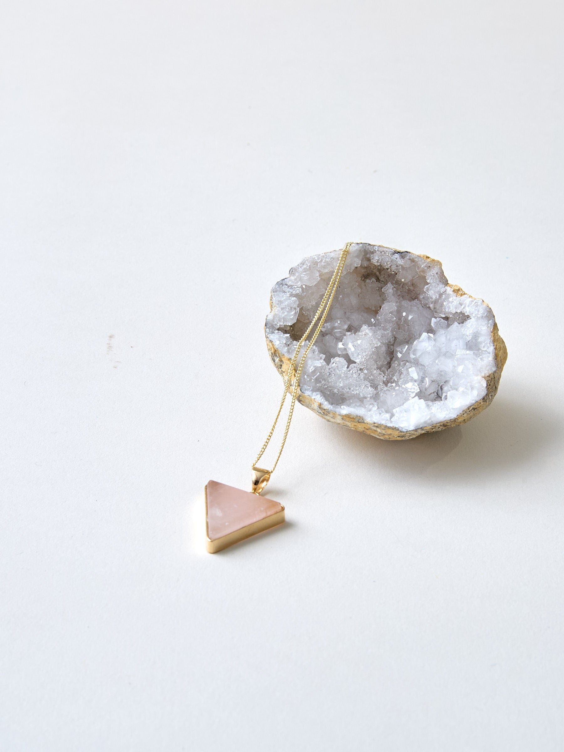 Die Ketten werden in Deutschland produziert und sind mit 18 k vergoldetes Tombak, einer hochwertigen Metalllegierung mit einem hohen Anteil an Kupfer und Zink. Es ist aufgrund seiner optischen und physikalischen Eigenschaften Gold sehr ähnlich, stabil und haltbar. Vergoldetes Bergkristall-Dreieck, ca. 2 cm, variiert, da Handarbeit