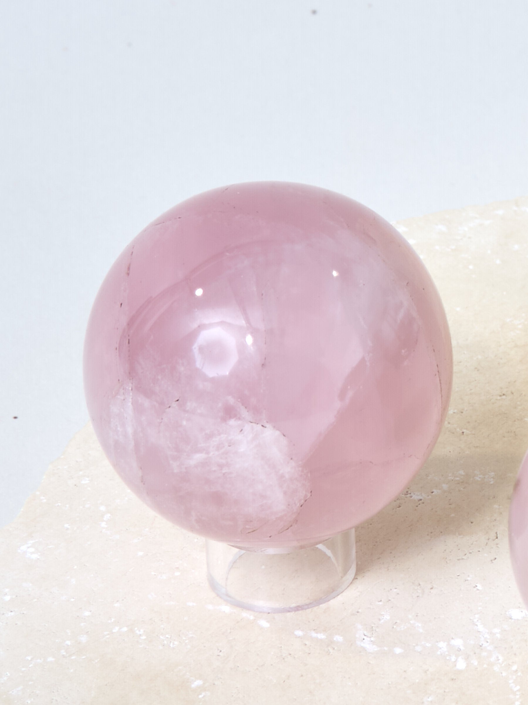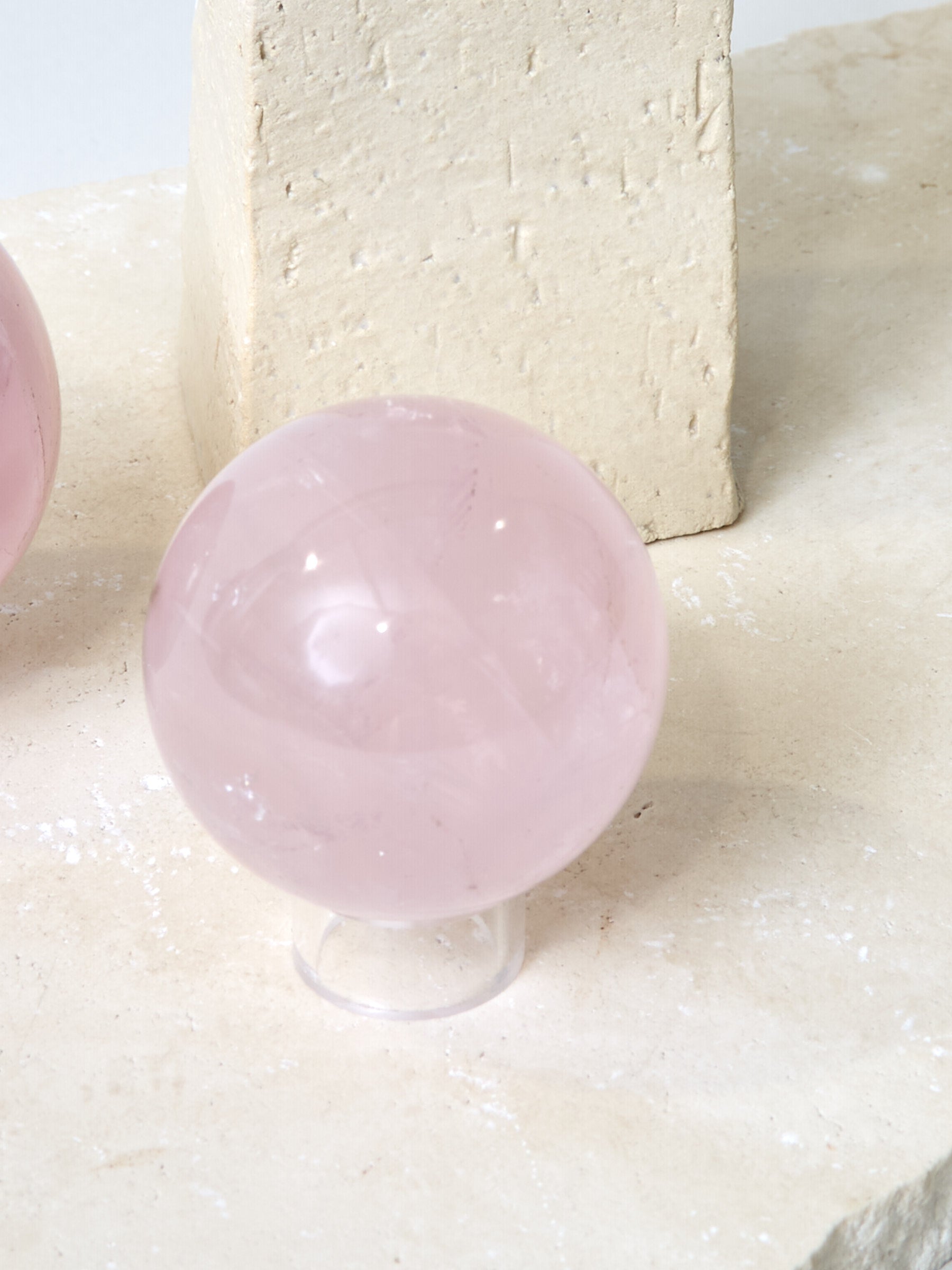 Die Kugel- Form unterstützt seine sanfte und runde Wirkung. Sie strahlt die harmonische, liebevolle Energie des Rosenquarzes aus und gibt ihr eine klare Präsenz. Sie ist wie eine Erinnerung, die Urvertrauen, Wärme, Zärtlichkeit und Mitgefühl ausstrahlt. Kugeln stehen immer für die universelle Ganzheit.