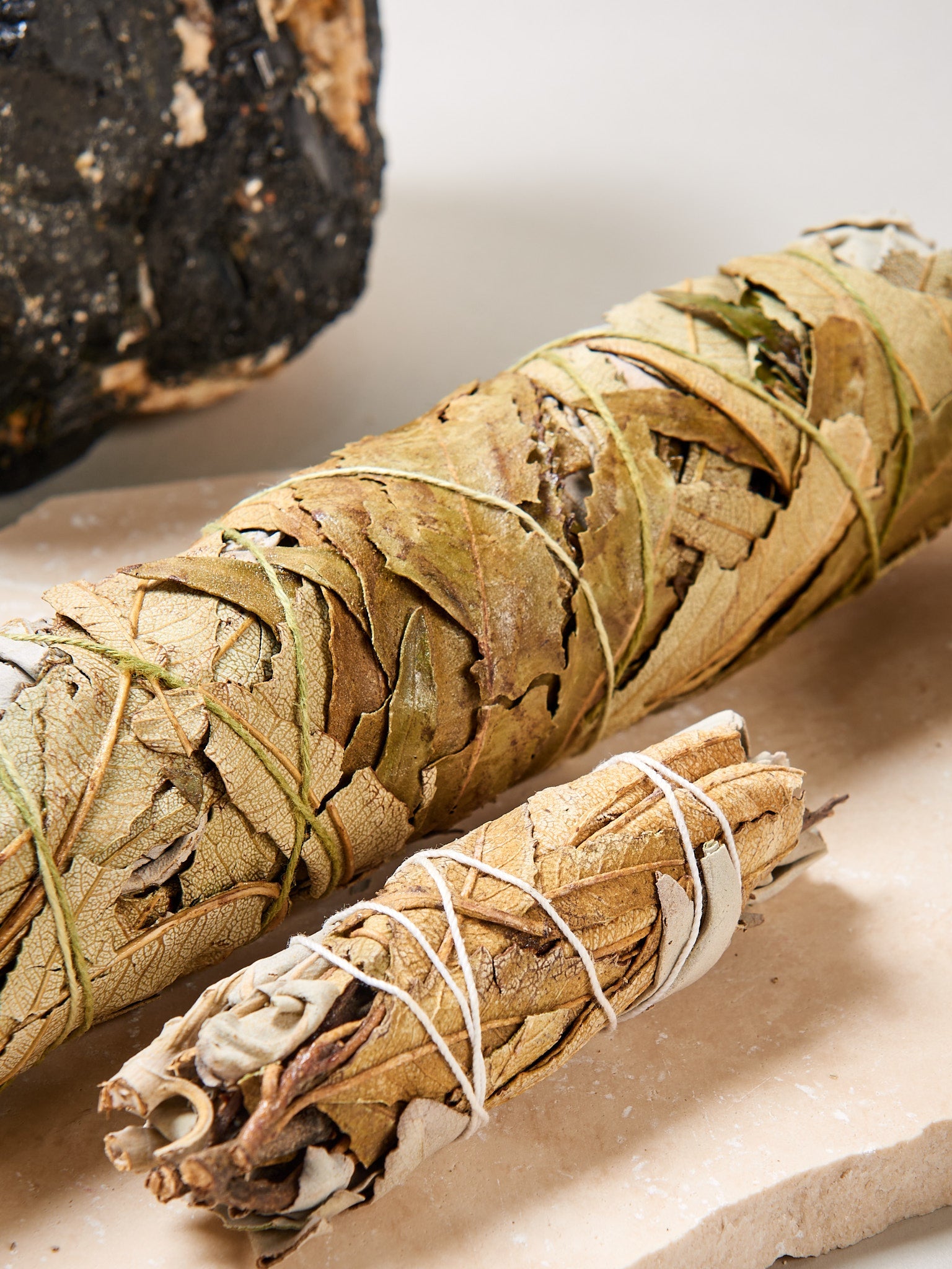 Yerba Santa bedeutes "Heiliges Kraut". Als solches wurde es von den nord- und mittelamerikanischen indigenen Völkern für spirituelle Zeremonien und Heilungsrituale genutzt. Hier kommt es in Verbindung mit weißem Salbei, der die Wirkung des Yerba Sanat durch seine klärende, lichte Energie unterstützt. Wir empfehlen diese Kombination sehr gerne für Rituale, um die Verbindung zur Natur und zur Erde zu stärken und wenn es um Heilung geht; darum, zurück in den eigenen Rhythmus zu finden und den ursprünglichen Zustand von Ganzheit und Heilsein wieder herzustellen.