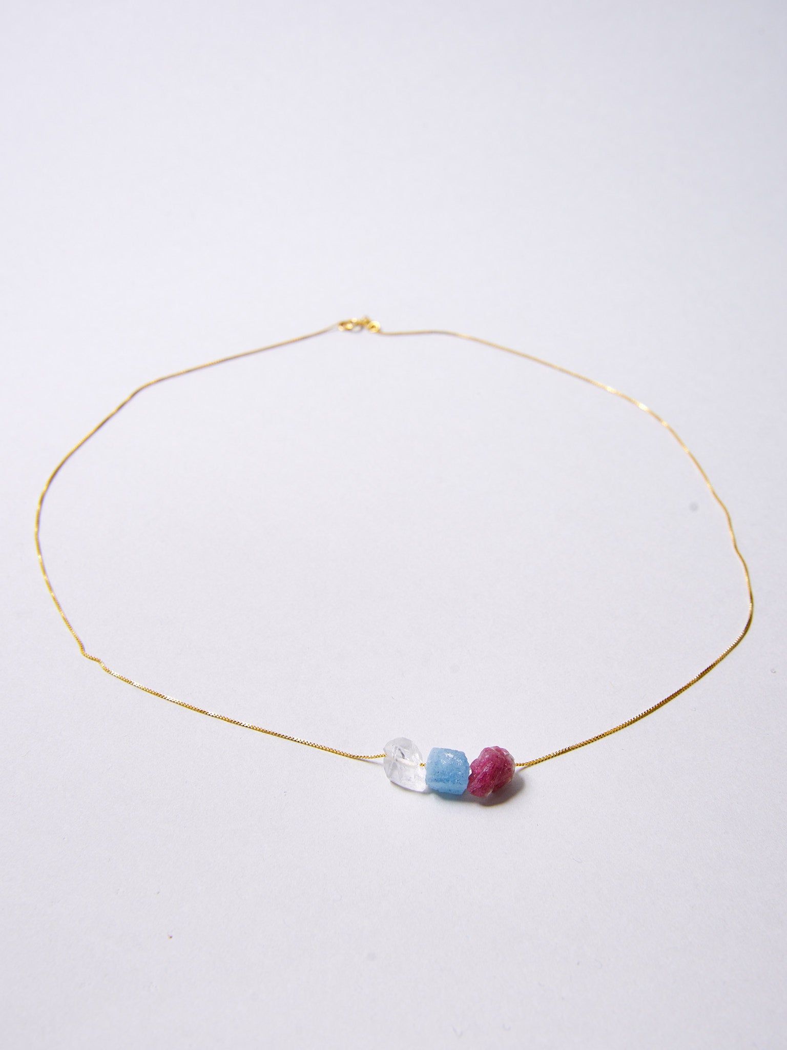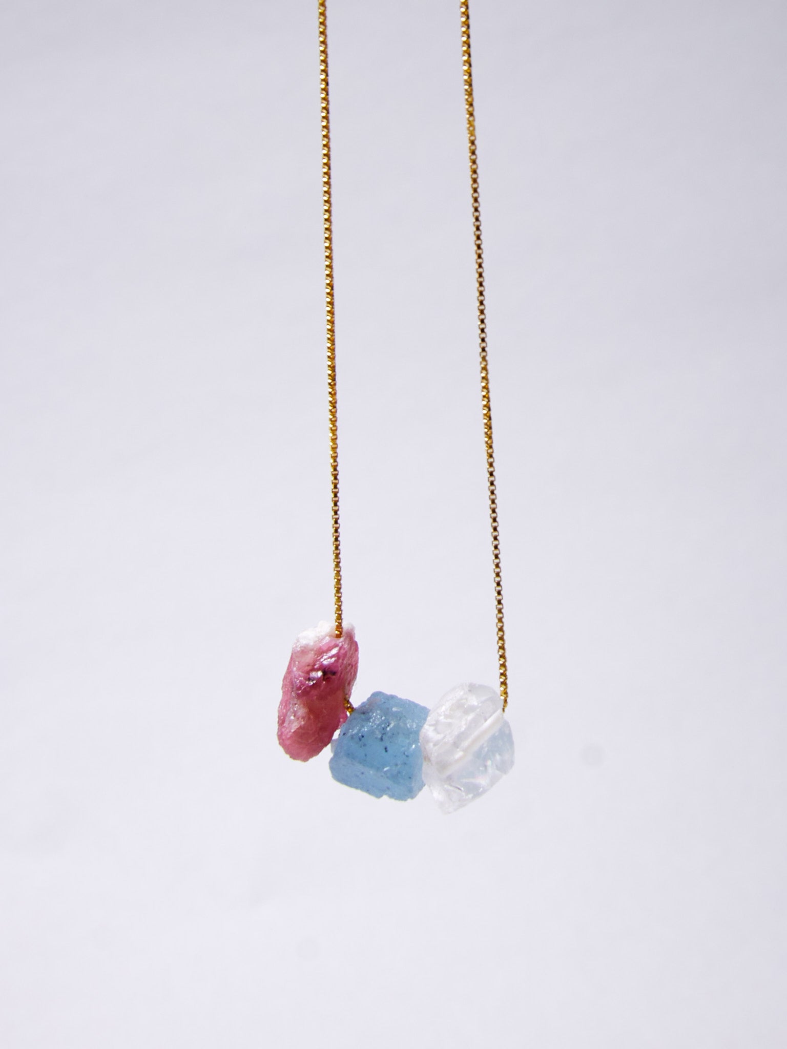 Aquamarin, Bergkristall, Pink Turmalin Kette - BLOOM