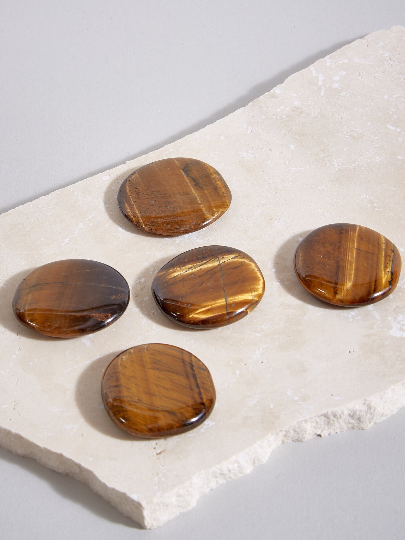 Wir lieben diese flachen Handschmeichler, die perfekt in die Hosentasche oder in den Schulranzen passen. Auch am Arbeitsplatz hilft er Überblick, Fokus und Objektivität zu wahren und den Körper aufgelegt empfiehlt er sich besonders zum Lösen von Stress und Anspannung. Jeder Stein schimmert gold-braun und ist auch als Meditationsstein bei der Entscheidungsfindung ein gutes Tool.