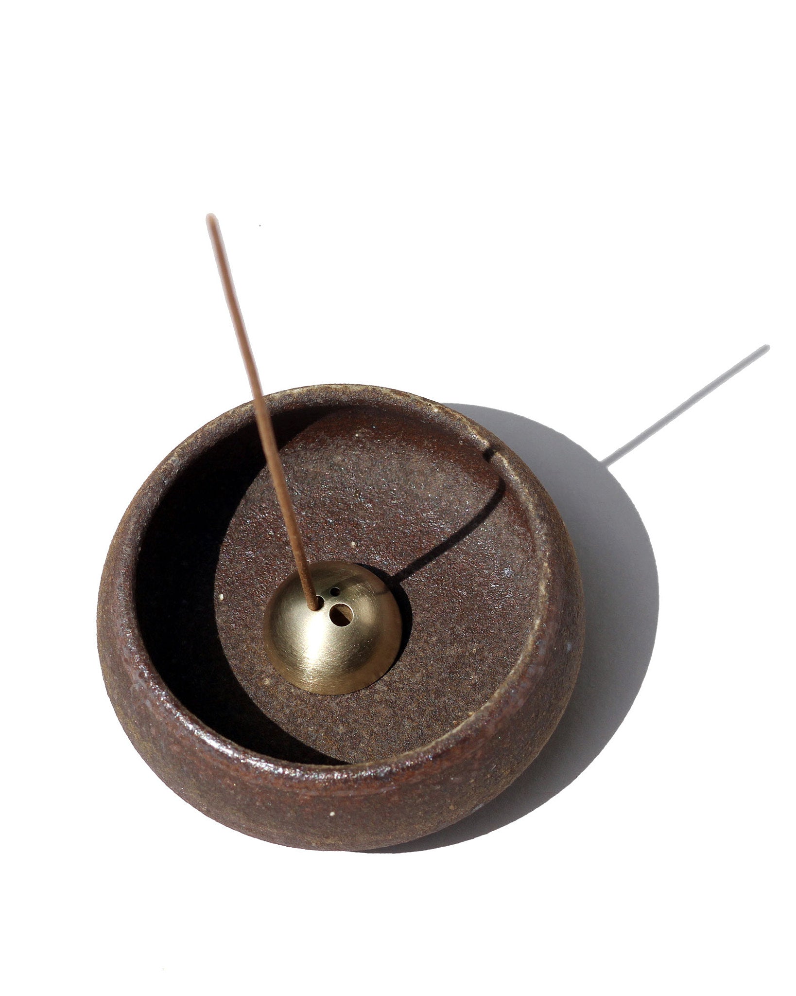 Die Räucherschale wird mit einem passenden Räucherstäbchenhalter aus Messing geliefert, der auch seperat verwendet werden kann und für alle bei uns angebotenen Räucherstäbchen passt.